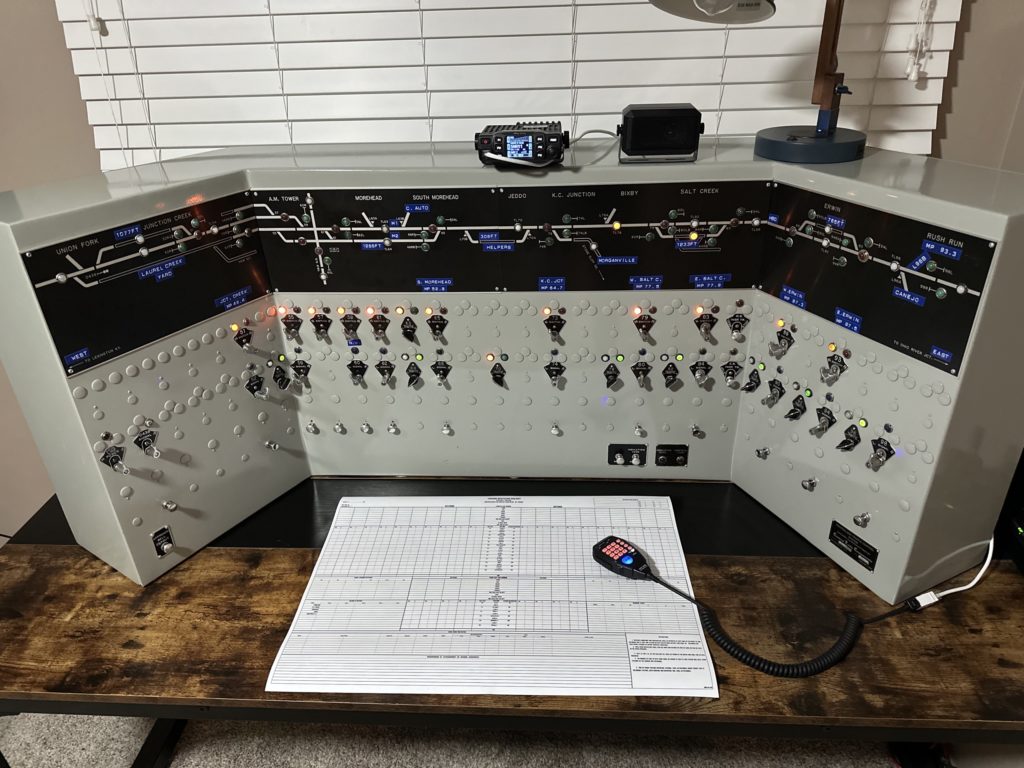 Point to point designed for operations. Ten (10) towns, a large yard and engine facility, and two staging yards. Supports lots of switching and several passenger trains. Around 250 hand-laid code 55 switches, and they’re all powered. Published in several magazines.